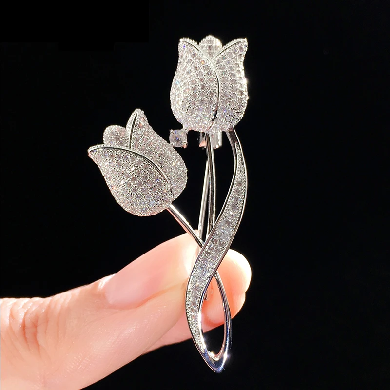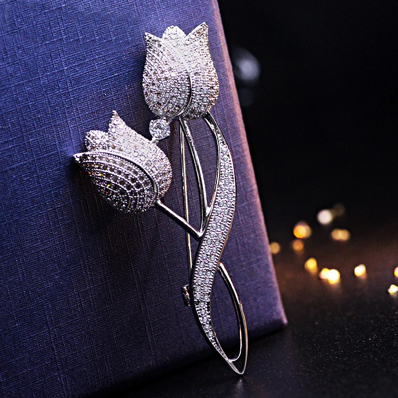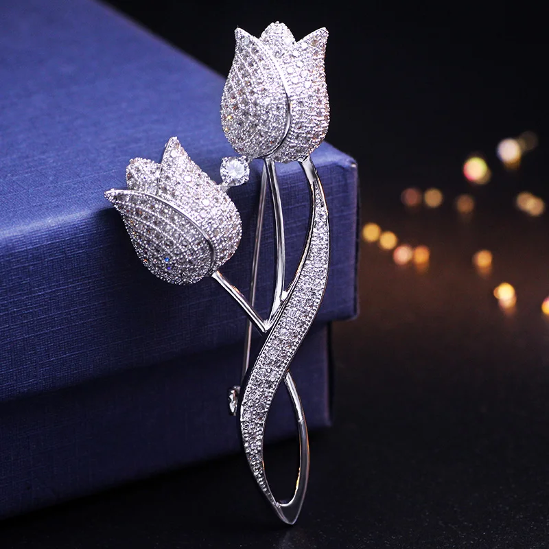 PartyKeywords:Tulip Flower Clear Zircon Women Fashion Brooches
