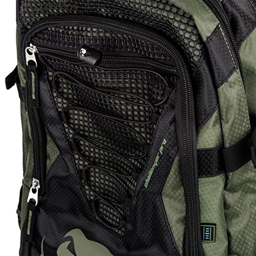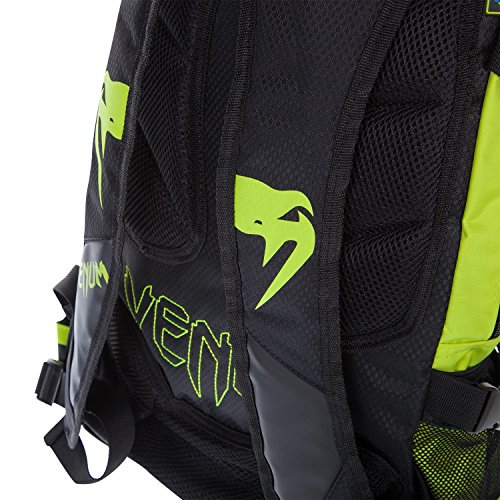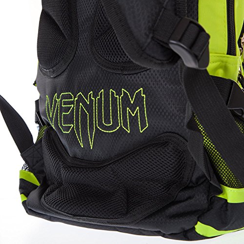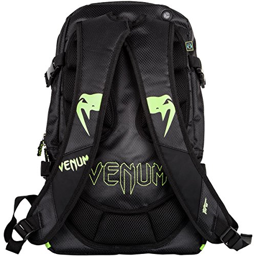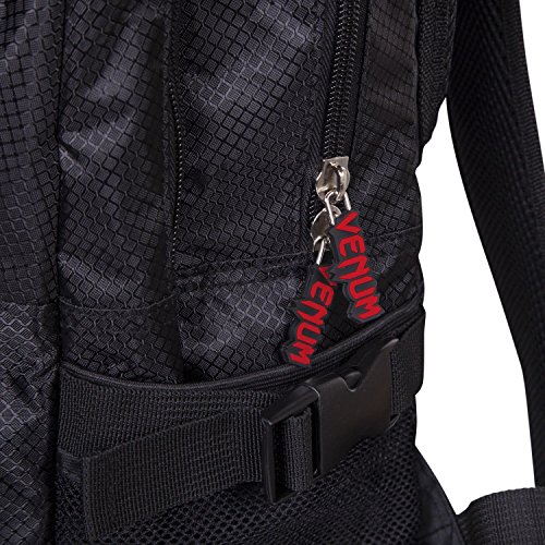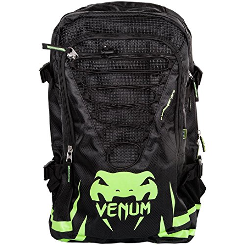 Studio : Venum Publisher : Venum Binding : Sports Product Description The Venum Challenger Pro backpack was designed to bring you durability and water-resistant protection for all your belongings within. Padded backing and air-mesh fabric were added for ultimate support. Adjustable padded shoulder straps make carrying items varying from heavy books to training gear more comfortable. The main compartment contains a padded storage pocket with Velcro closure for up to a 17 inch laptop and a hidden MP3 player pocket with headphone jack opening to listen to music on your way to training. The second compartment is large enough to hold equipment for school or the gym. The smaller Half-Zip front pocket offers sections for you to organize your smaller belongings. With the Venum Challenger Pro backpack, you'll be sure to make an impression walking into any room while keeping your valuables protected in style. 0