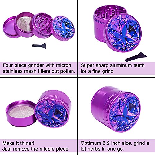 (BestBuds)/Kitchen Dining/Cook's Tools Gadgets/DIRECT FROM USA/Best-Buds Purple Weed Grinder. 4pc Cool Grinder with Leaf Design. Great for Pot, Herbs Tobacc...
