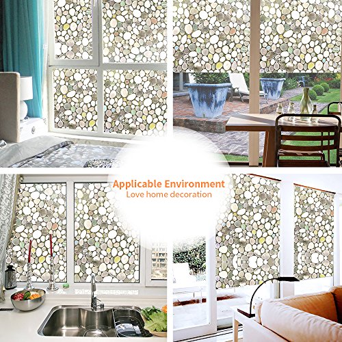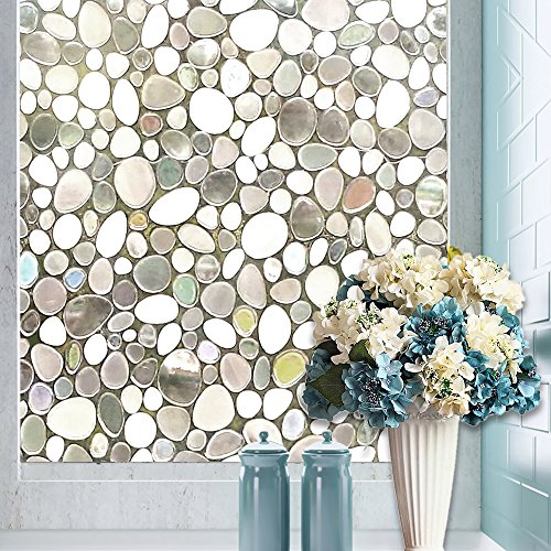 Wopeite Semi Private Window Film Cobblestone Decorative Static Cling Reuse Film For Heat Control Sun Blocking Stained Glasses for Home Kitchen Bedroom 35.4 X 78.7 inches
