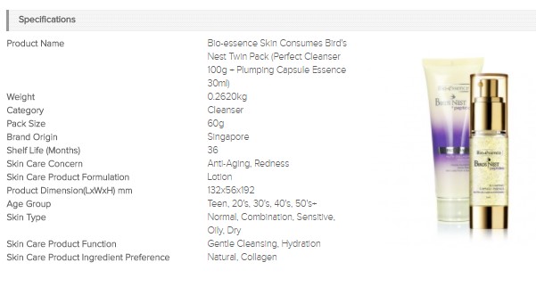 Bio essence skin consume Bird's Nest a nourishing and brightening skin care solution that incorporates traditional elixirs of beauty with new frontier technology. Formulated with 3 luxurious ingredients for intense nourishment: (i) Bird's Nest Extract - Stimulates skin regeneration and improves skin elasticity (ii) Bio-Whitening Peptides - Reverse the appearance of dull, lifeless skin to deliver fairer and brighter skin (iii) Capsule Essence - Filled with concentrated essence to firm and hydrate skin
