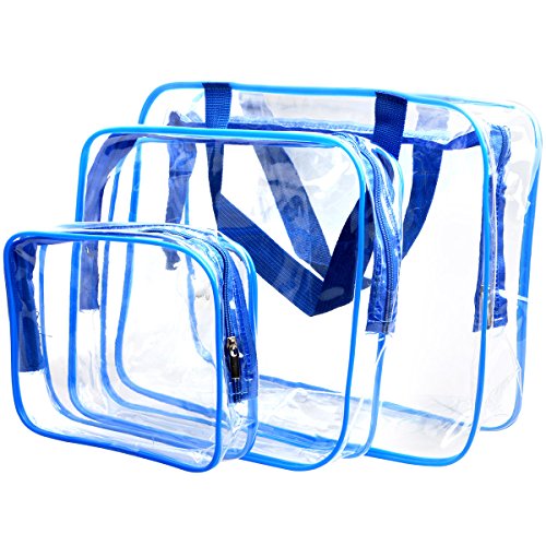 ESHOW 3 Set Clear Packing Cubes, PVCWaterproof Multi-function Hand Pouch Tote Bag Makeup Bag with Zipper and Travelto Buggy Bag for Toiletries Cosmetic and Bathroom Accessories