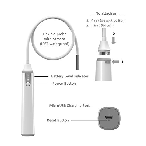 IP 67 waterproof you can snake the endoscope into such places a s underneath a car or bed ,inside a engine of a car or a desktop computer,beneath the kitchen sink or down the drain,and other constricting spaces