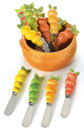 Grasslands Road Citrus Ceramic Cheese Spreader, 5-Inch, Assortment, Set of 12