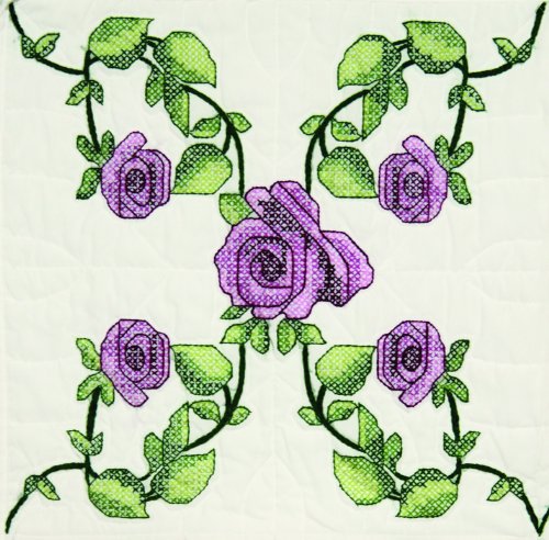 Fairway Needlecraft 83245 Cross Stitch Perle Edge Pillowcases, Rose Vine Design, Standard, White