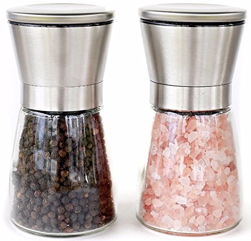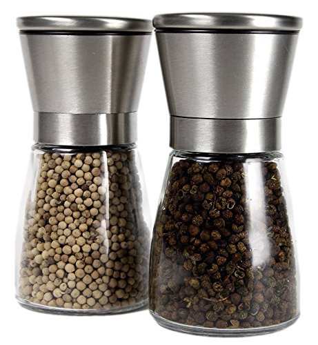 - ✔️Modern and Unique: Stainless Steel and Glass Salt and Pepper Grinder Set - Simple design with no logos or branding that will look elegant and smart on your table at all times and charm your family and guests.