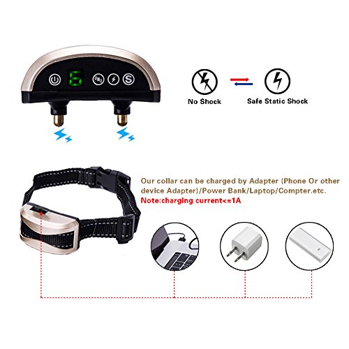 Which bark collar is right for my dog? Safety comes first:Our humane and harmless system ensure a safety wear; Adjustable sensitivity and 3 training modes:beep, vibration, shock.0-7 adjustable grade, gentle shock is safe or you can choose no shock mode as your needs, effectively stop barking with no harm to dogs of all types; Rechargeable Long Lasting:Built-in USB battery, can be fully charged in about an hour and can be used continuously for 14 days.Our collar can be charged by Adapter(Phone or other device Adapter)/Power Bank/Laptop/Computer etc; Only your dog's Sound combined with Vibrations of Sound will trigger the sensor, not Sound!!! Sonic bark deterrents are reflective nylon adjustable waterproof anti barking training collars.