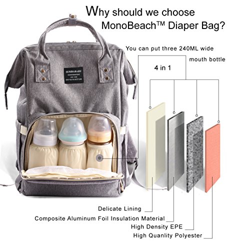 # MULTI-FUNCTION: This diaper bag with 13 internal & external pockets, Separated storage pockets allow you to organize all your supplies and your baby's supplies easily. Includes 3 x insulated Milk bottle pockets all in 1 x big pocket in front of the bag which can keep liquids warm or cold for hours; 1 x tissue pocket and 1 x water bottle pocket in the side; and 6 x storage pockets in the oversize internal. Learn more details information please reference as picture2/3/4.