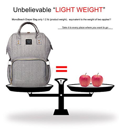 # Light weight MonoBeach Diaper Bag only 1.2 lb (product weight), equivalent to the weight of two apples!!! Take it to every place where you want to go.