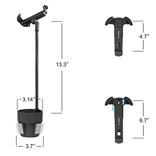 G-Cord Extra Long Arm Adjustable Automobile Cup Holder Mount (Black)