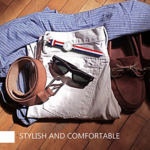 -. Title : Men's Nylon Strap Watch Unique Analog Quartz Waterproof Business Casual Big Face Dress Wrist Watch with Blue White Red Striped Canvas Band