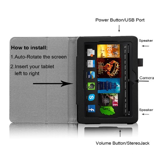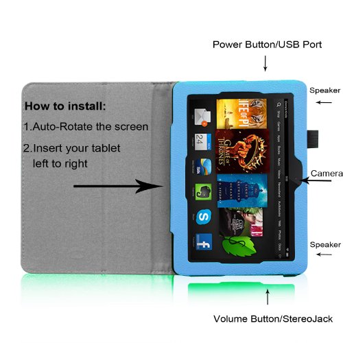 -. Binding : Wireless Phone Accessory -. Brand : Fintie -. Feature : Built from durable PU (synthetic) leather with soft Microfiber interior to prevent scratches. Specifically designed for Amazon Kindle Fire HDX 7 (2013 Release). / Cover contains flip capability to transform the case into a horizontal viewing stand / Interior pocket opens for easy insertion of your device and includes velcro flap to secure it in place / Built-in magnetic strip provides sleep/wake feature. Designed with a smart holder for stylus/pen (stylus NOT included) / Available in a variety of bright and fun colors. -. Label : Fintie -. Manufacturer : Fintie -. MPN : parts -. PackageQuantity : 1 -. PartNumber : parts -. ProductGroup : CE -. ProductTypeName : WIRELESS_ACCESSORY -. Publisher : Fintie -. Studio : Fintie -. Title : Fintie Folio Case for Fire HDX 7