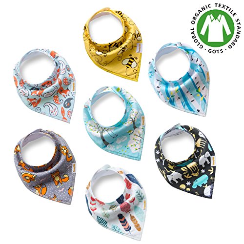 Premium Baby Bandana Drool Bibs unisex 7-Pack Burp Cloth Gift Set for Drooling Teething Feeding 100% Organic Cotton Absorbent Hypoallergenic for...