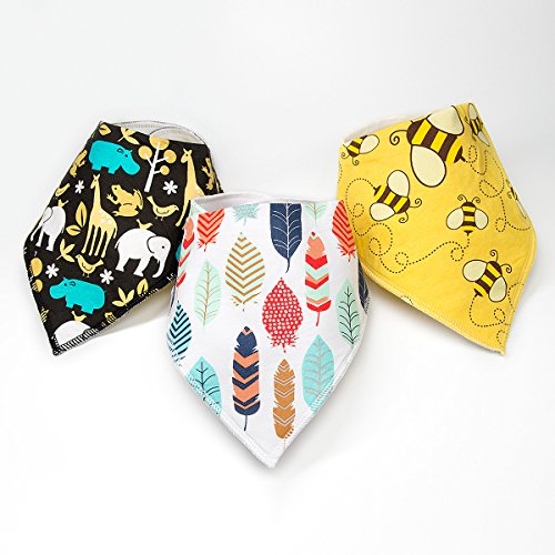 Top stitched around the edge for durability and style, close with 2 nickel-free snaps for adjustable neck size, hypoallergenic nickel-free Snap closures to eliminate any risk of skin allergies. So your baby is sure to be secure, safe and most importantly - healthy. It prevents your baby's soft skin from reddening. Perfect to fit for babies aged 3-36 months