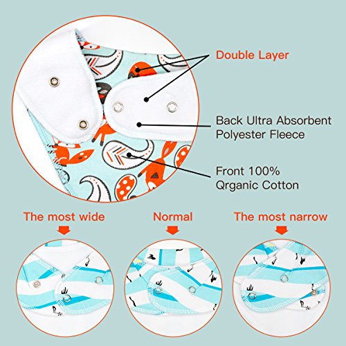 Premium Quality Super Absorbent Drool Bibs. Made with 100% Soft Organic Cotton with an Ultra Absorbent Polyester Fleece Backing Keeps Dribble and Drool Off of Baby, Infant, Toddler Clothes. Gentle to the touch helps keep babies tender skin dry and rash free. great for teething, drooling, and reflux. no more wet clothes