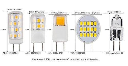 CBConcept 10-Pack, 2 Watt, 220 Lumen, Shorter<35mm G8 LED Bulb, Warm White 3000K, 20W Equivalent, Tower Type 360° Beam Angle, 120Volt, Ceramic G8 Bi-pin JCD LED Halogen Replacement Bulb,Not Dimmable