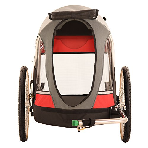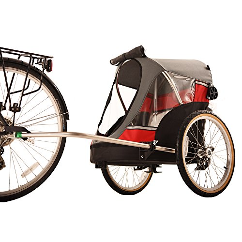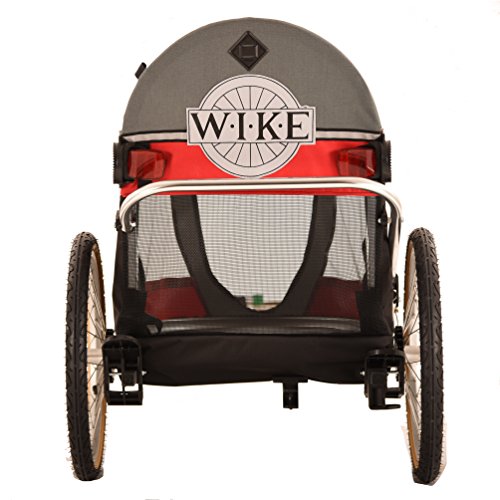 -. Binding : Misc. -. Brand : WIKE -. EAN : 0057531000023 -. Feature : The front of the trailer has a bug screen which can be easily rolled down to protect your pet from unwanted visitors. / There is an adjustable restraining leash attached to the rear of the inside trailer. / Two extra bicycle hitches are included for attaching the trailer safely to your bicycle with just one quick lock. / Ultra-light aluminum frame design for easy towing, which is also long-lasting and rustproof. -. Label : Wike -. Manufacturer : Wike -. PackageQuantity : 1 -. ProductGroup : Pet Products -. ProductTypeName : PET_SUPPLIES -. Publisher : Wike -. Studio : Wike -. Title : Wike Wagalong Pet Trailer - Red/Gray -. UPC : 057531000023