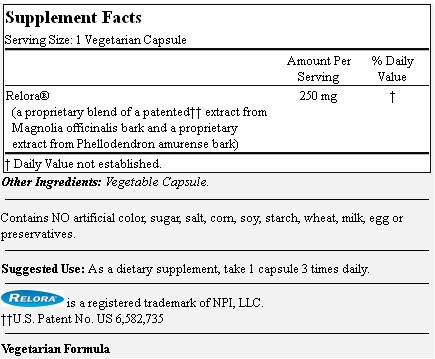 Relora 250mg (120 Vegetarian Capsules)