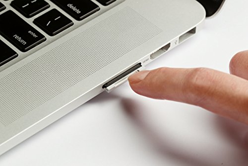 A microSD memory card adapter that sits completely inside the MacBook SD memory card slot with no protruding parts.
