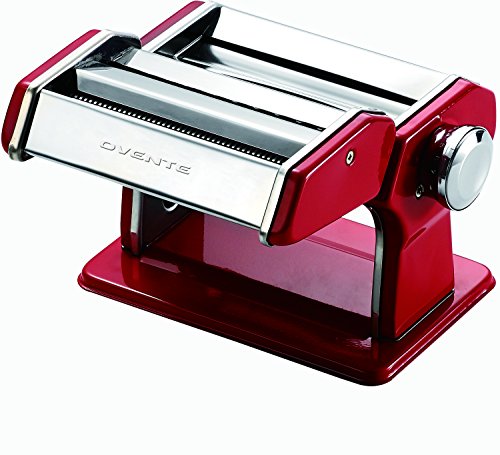 Studio : Ovente Publisher : Ovente Binding : Kitchen Product Description Ovente introduces the heart of Italy with different size and color options to choose from. The manual hand crank pasta maker is available in 2 different sizes: 150mm and 180mm and three color options: chrome stainless steel, metallic red and matte black that fits your kitchen countertop. The manual hand crank pasta maker is suitable not only to make pasta but also to flatten out polymer clay; fondant for cakes, roll out dough, etc. is which perfect for everyday needs. The pasta maker is made from high quality and food grade carbon and stainless steel construction. It comes with a stainless steel hand crank with plastic handle to let the pasta roll and turn it into different types of pasta. It also has an adjustable clamp to secure the pasta maker in place.