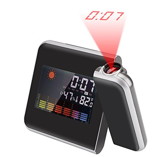 Package Included: 1*Clock 1*USB power cable 1*English Chinese user manual 1*Package box Note: Powered by 2 pieces AAA alkaline batteries (not included). It can be also powered by DC 4.5V through 3.5mm port (cable is not included) Specification: Material: ABS Item Color: Black Display / Function: Weather, calendar, time, °C/°F temp, humidity,12/24 hour forma, alarm, snooze Projection Color: Multi-color Backlight: Yes, white Calendar: 2001-2099 year Project Distance: 1-5m / 3.3-16.4ft Measure Temp. Range: -9.9~60°C / 14.2~140°F Measure Humidity Range: 20~90% 0 |
