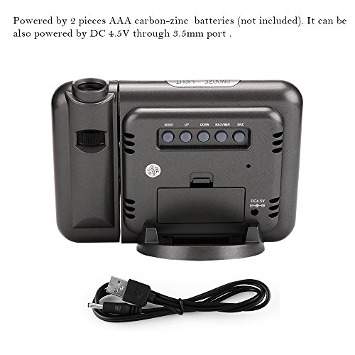 1. Please use carbon-zinc battery, do NOT use alkaline battery, or it might damage the clock. 2. When using carbon-zinc battery as power supply, the backlight and projection will turn off automatically after a few seconds and turn on again when press the button. 3. When using plug cable DC 4.5V as power supply, the backlight and projection will keep turning on and cannot turn off. 4. Do NOT use the battery power and DC 4.5V power at the same time, or it might damage the clock. 5. This clock does not have power off memory function. 6. The first to press the 'MODE' button can show the calendar. 7.Compared with a professional thermometer and humidity tools, there is a little acceptable error.Please see the professional temp and humidity tools (ASIN B072JB3W5N) if you need the accurate measurement