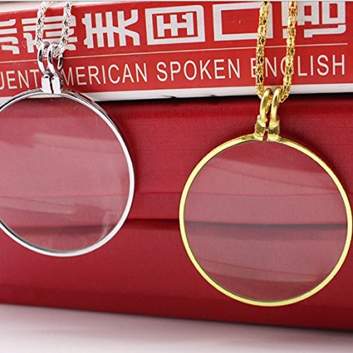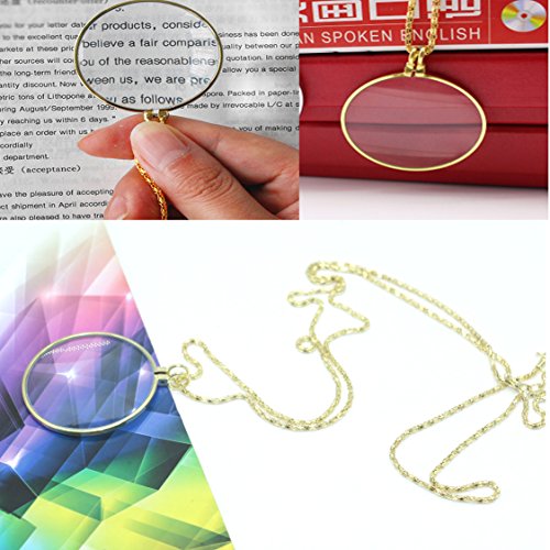 5x Necklace Jewelry Magnifier Gloden Coin Magnifying Glass Pendant for Library, Jewelry, Reading Fine Print,Increase Vision By IDS