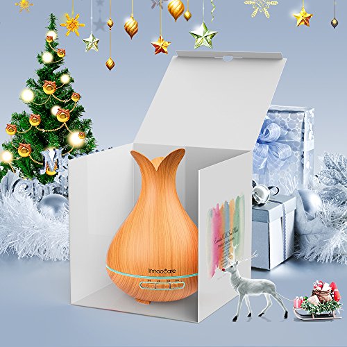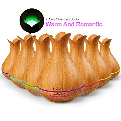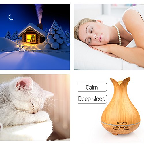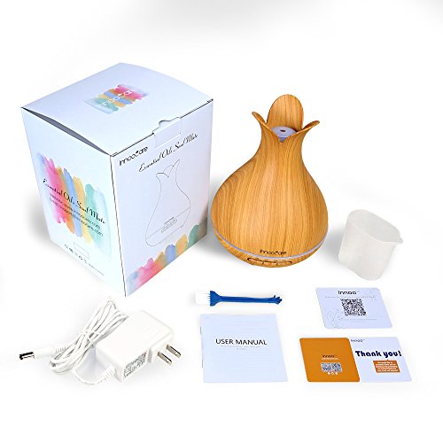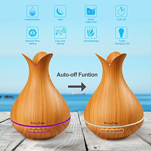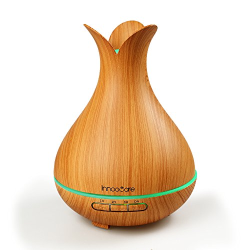 300ml Essential Oil Diffuser, InnooCare Wood Grain Cool Mist Humidifier Ultrasonic Petal Design Aroma Diffuser for Office Home Living Room Bedroom Yoga SPA