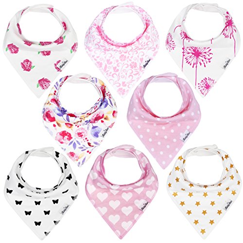 -. Title : KiddyStar Bandana Baby Drool Bibs for Girls, 8-Pack Bib Set for Drooling and Teething, 100% Organic Cotton, Soft and Absorbent, Baby Shower Gift for Newborn Babies and Toddlers