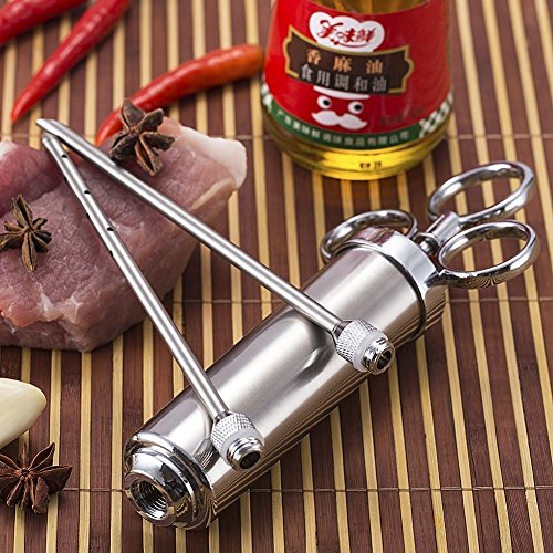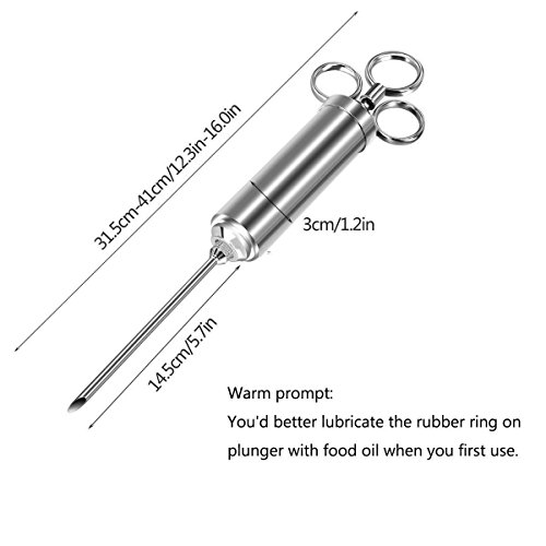 VERSATILE - The Seasoning Stainless Steel Injector has 2 needles With a hole in it and no hole. Needle with the large end hole can inject solids e.g. minced herbs, onions and garlic, etc. the other needle can inject sauce in Grilled chicken or food what everything you like to eat.The silicone gloves is safe to use in ovens, microwave ovens and