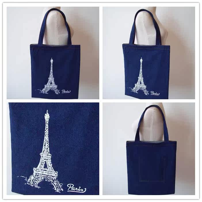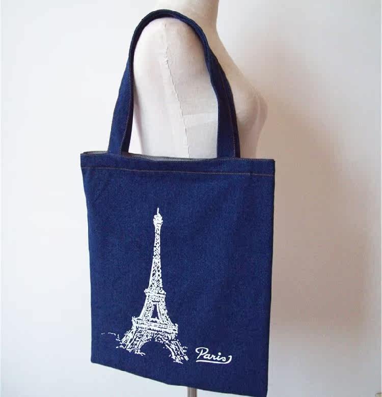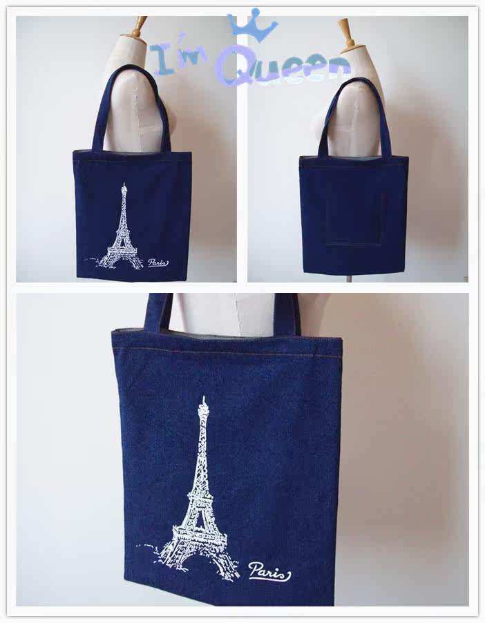 2016新款女包单肩包牛仔卡通布包休闲女士包包艾菲尔铁塔牛仔包