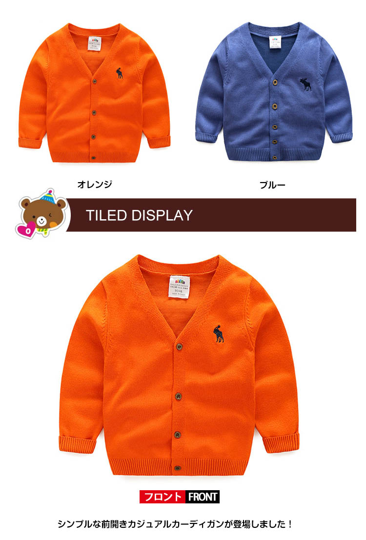 | シンプルな前開きカジュアルカーディガンが登場しました!大人顔らしいVネックで首元をすっきりと見せてくれます。伸縮性のあるリブ編みなのでフィット感がよい。やや細身のシルエットにすることで、すっきりとしたシルエットに仕上げました。大切なお子様のことを一番に考えて上質な綿素材にこだわりました。普段使いにガンガン使えるライトアウター間違いなし! | |