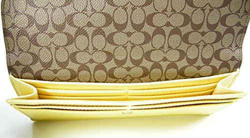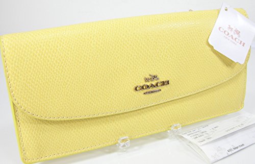 -. Brand : Coach -. Color : Pale Yellow -. Department : womens -. EAN : 0888067701852 -. ProductGroup : Shoes -. ProductTypeName : HANDBAG -. Title : New Coach Wallet Pale Yellow Purse Hand Bag Clutch XGrain Soft Genuine Leather -. UPC : 888067701852 Description: Genuine leather exterior in pale yellow with brass hardware. Fully lined interior with a zipper pocket and a slip pockets. It measures 7 3/4 x 3 3/4. The interior opens to 8 credit card slots and 2 large pockets for cash. The back of the wallet has a zipper pocket for change. Tag Information: Style No: F52689 Pale Yellow Style Name: XGRN LTH SOFT WLT