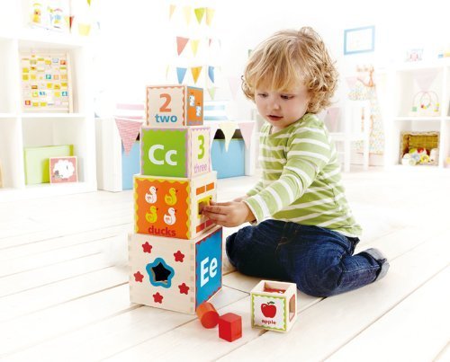 Educo Pyramid of Play From the Manufacturer The Pyramid of Play consists of five wood nesting blocks with fun graphics and new lifestyle colors. Each stackable block helps with the recognition of letters, pictures, colors, numbers, and sizes. Shapes fit with their corresponding block with a color outline to help teach matching. The Educo brand has meant quality and innovation in toys for over 30 years. 0