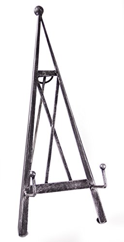 Industrial Style Decorative Plate Stand and Art Holder Easel in Brushed Silver Finish - 15"H