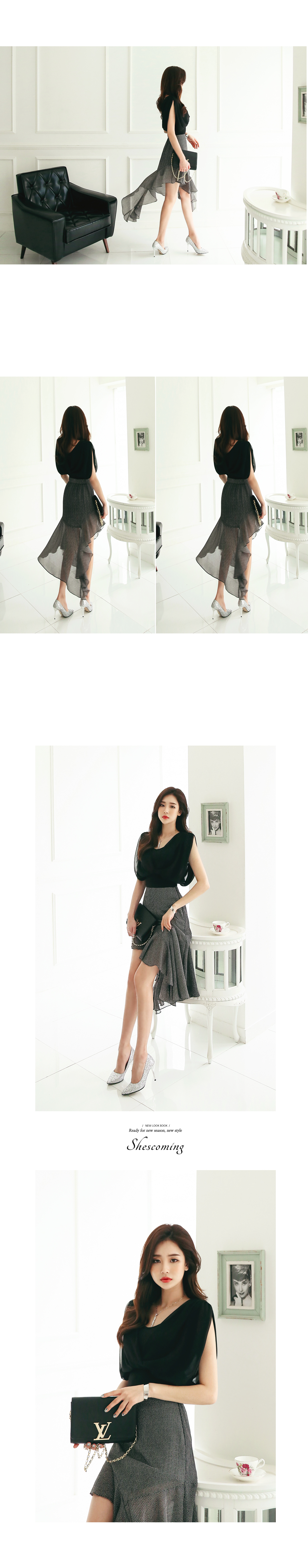 민소매인듯 숄더라인을 살짝 덮어주어