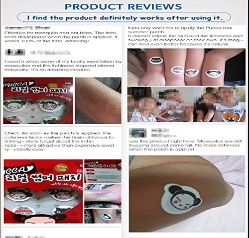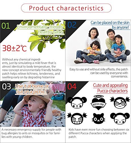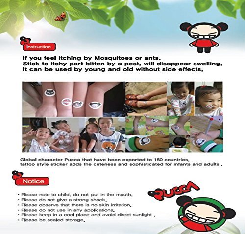 Studio : Kayone Publisher : Kayone Binding : Health and Beauty Product Description [World's Patent]After Insect Bite Patches - Natural PUCCA Cute Mosquito Patch Ant Bite Patches Relief After Insect That Reduce Itchiness - 12pcs/pack PUCCA Real Summer Mosquito Ant Bite Patch!World-First Environment-Friendly Wellbing mosquito Patch Has Arrived, Wonderfully Removing The itch! Please Briefly Stuck From A Mosquito Bite! No Anesthetic! No Antihistamine! No Steroid! 1. FeatureProduct characteristics - without any chemicals but only pure slight heat similar to the human bodytemperature, the new-concept environment well-being mosquito patch, world-first patented,fundamentally decomposes the histamine toxicity of mosquitoes, ants, or other harmful insects so as to remove itch, sting or swelling.2. World's Patent * KOREA NO. 10-1229677* USA NO. 14/358,976 * CHI NO. 2012 80067253 * EU NO. 12 850 012. 1* IND NO. 1229/MUMNP/2014 * JPN NO. 2014-5422553. InstructionIf you feel itching by Mosquitoes or Ants, Stick to itchy part bitten by a pest. Then it will disappearswelling. If can be used by young and old without side effects. 0 |