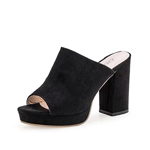 (SUKEQ)/Women's/Sandals/DIRECT FROM USA/Chunky Heel Slide Sandals, SUKEQ Stylish Women Faux Suede Block Heels Platform Slip On Sandals,...