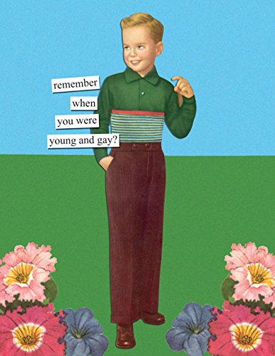 -. Binding : Office Product -. Brand : Anne Taintor, Inc. -. EAN : 0823398312322 -. Feature : Celebrate birthdays with a smile and a wink. Our gorgeous cards feature full-color front and back with a spot of color inside. P.R.Inted with vegetable-based ink on FSC-Certified uncoated stock using 100% wind-generated electricity and sleeved with color envelopes / Features the Phrase: Remember When You Were Young And Gay. / Measures: 4 1/4 x 5 1/2 inches / By Anne Taintor. Celebrating over 25 years of making smart people smile. -. Label : Anne Taintor -. Manufacturer : Anne Taintor -. MPN : 31232 -. NumberOfItems : 1 -. PackageQuantity : 1 -. PartNumber : 31232 -. ProductGroup : Office Product -. ProductTypeName : PAPER_PRODUCT -. Publisher : Anne Taintor -. Studio : Anne Taintor -. Title : Anne Taintor Happy Birthday Greeting Card - Remember When You Were Young And Gay -. UPC : 823398312322