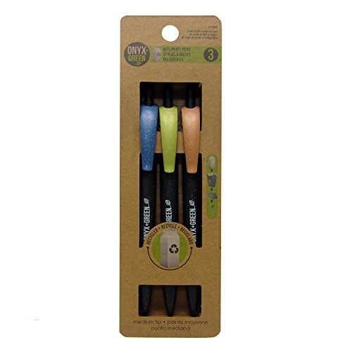 -. Title : Onyx and Green 3-Pack Retractable Ballpoint Pens, Recycled Milk Carton, Med, Black (1003)