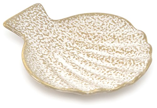 -. Title : White Embossed Ceramic Clam Shell Dish, Set of 4 - 6"x6" - Martinique