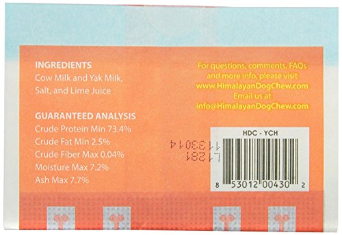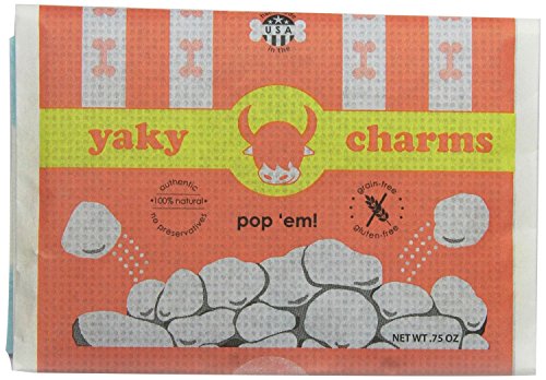 -. Binding : Misc. -. Brand : Himalayan Corporation -. Feature : All natural ingredients: yak and cow milk, salt and lime juice / Ancient recipe from the himalayas - 100% natural - No preservatives or additives. / Guaranteed Analysis - Crude protein: Min 73.4%. Crude Fat Min: 2.5%. Crude Fiber Max: 0.04%. Moisture Max: 7.2%. Ash Max: 7.7%. / Must microwave (for 1 to 1:30 minutes) and cool before serving. Results vary based on different microwaves. Watch for the bag to stop moving as you will not hear it pop. / For all dog sizes - 35 to 40 pieces -. Label : HIMALAYAN -. Manufacturer : HIMALAYAN -. MPN : Him-9641 -. PackageQuantity : 1 -. PartNumber : Him-9641 -. ProductGroup : Pet Products -. ProductTypeName : PET_SUPPLIES -. Publisher : HIMALAYAN -. Studio : HIMALAYAN -. Title : HIMALAYAN YAKY CHARMS DOG TREAT DOG POPCORN MADE IN USA