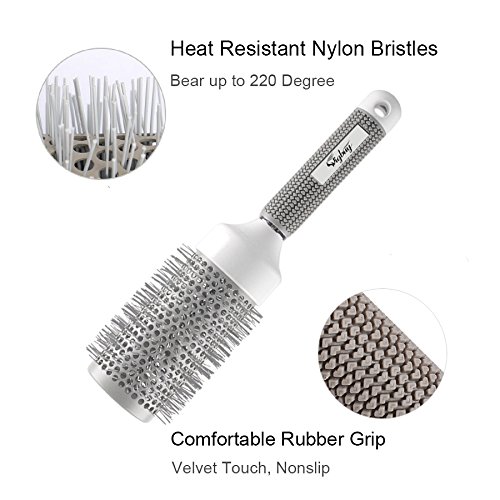 - COMFORTABLE RUBBER GRIP: This large round hair brush has grooved, nonslip velvet touch grip for comfortable control. It helps to reduce vibration, enabling a more comfortable and secure grip. It is ergonomic, safe and easy to use. Moreover, it is hand-finished to remove any sharp edges to feel comfortable in the hand.
