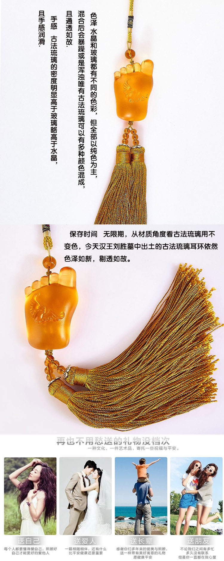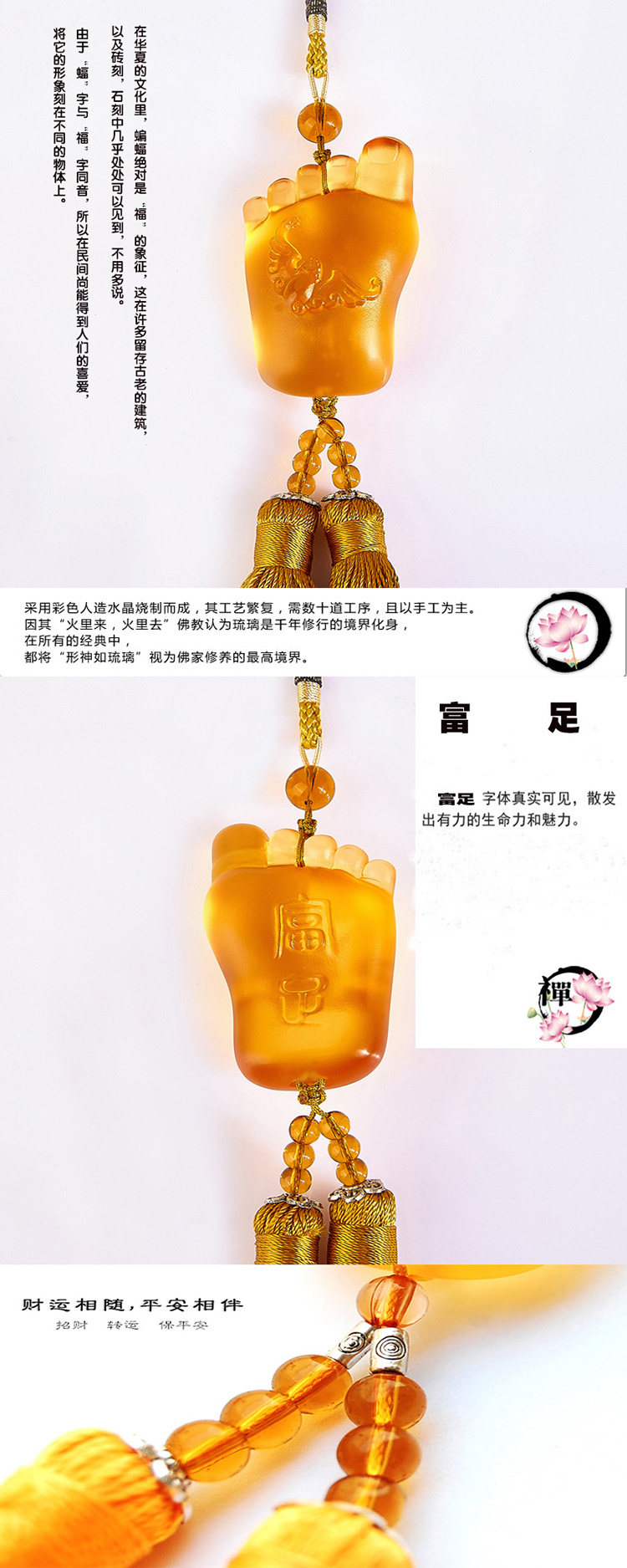 知足常乐大脚丫汽车挂件车内饰用品后视镜保平安符琉璃车挂 饰品