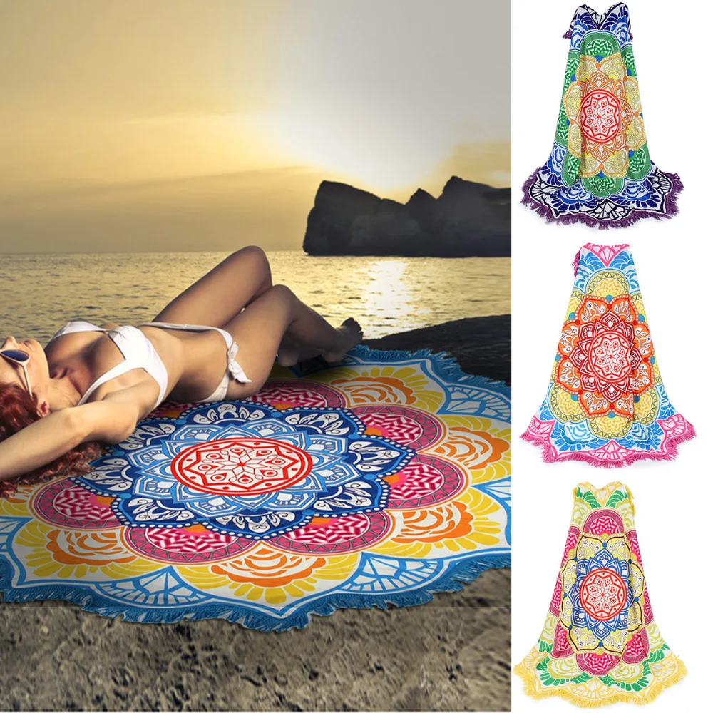 Scarves Length: 135cm-175cm Indian Round Mandala Tapestry: Tassel Mandala Beach Scarf Gypsy Bikini Cover up Shawl Pareo Wrap