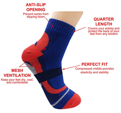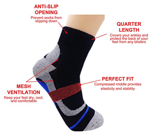 -. Binding : Apparel -. Brand : Ayli -. Department : mens -. Feature : Fits US Men's shoe size 7 to 12, elastic and stretchable socks. / Great Quality - 70% Premium Cotton + 28% Polyester + 2% Spandex. Our cotton socks are very soft, comfortable and breathable, adding polyester and spandex improved their fit, durability and strength. / Quarter length socks covers your ankles and protect the back of your feet from any blisters due to new shoes. Non slip opening to keep socks in place. Anti-Odor ventilation design. / 5 pairs, sports socks with a casual design, suitable for everyday wear and perfect for running, walking, cycling, basketball, and all kinds of sports activities. / Machine Washable. Satisfaction Guarantee, full refund within 30 days, no questions asked. Perfect as a gift. -. IsAdultProduct : 0 -. ProductGroup : Apparel -. ProductTypeName : SOCKSHOSIERY -. Title : Ayli Men's Quarter Length Athletic Running Sports Outdoor Cotton Comfort Socks, 5 Pairs