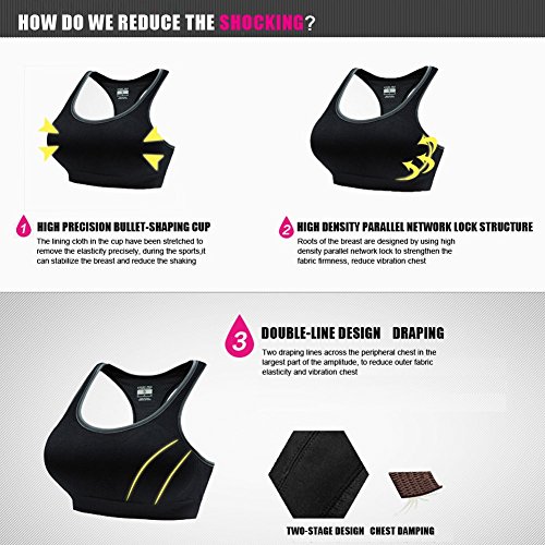 -. Feature : 62% Nylon, 30% Polyester, 8% Spandex for sport bras / Active Workout Racerback Seamless Sports Bra & Tight Fitting for Support -- Super Comfort and Super Soft Fabric -- Moisture Wicking and Perfect for any type of Physical Activity --Medium Support and Elastic Closure / Removeable Pad for Ladies Sports Bra.Low-impact support ideal for yoga,running, pilates or weight trainin / Lightweight,Super-smooth, ,Side Widening,Full coverage for additional support duirng yoga, pilates or weight training / Pull On closure, High Support, Pullover Style Sports Bra,Machine Wash (Hand Wash Recommanded)