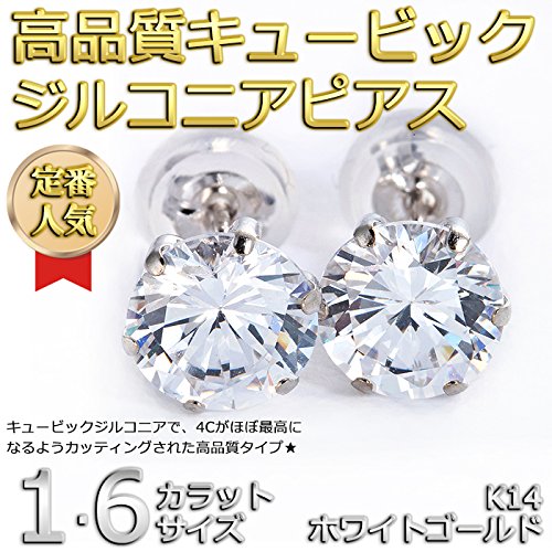 -. Title : 宝石の森 キュービックジルコニア ピアス K14 ホワイトゴールド 超大粒 1.6ctサイズ 高品質 シリコン製ダブルロックキャッチ