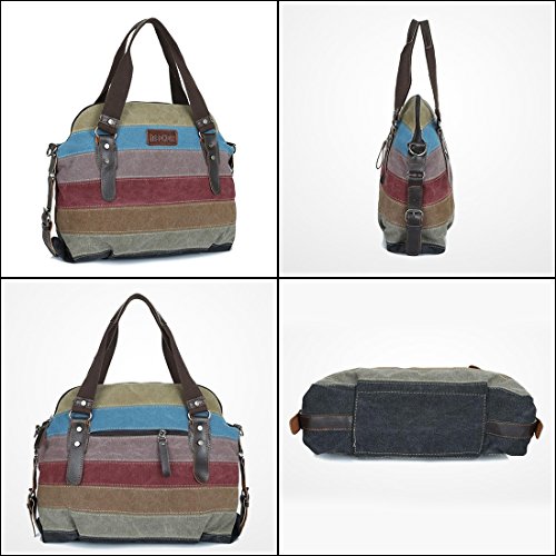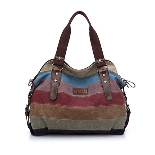 -. Title : Striped Tote Bag, iTECHOR Multi-Color Striped Canvas Handbag Women's Bags