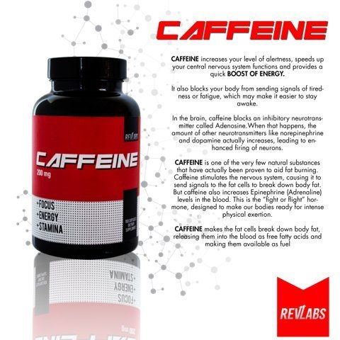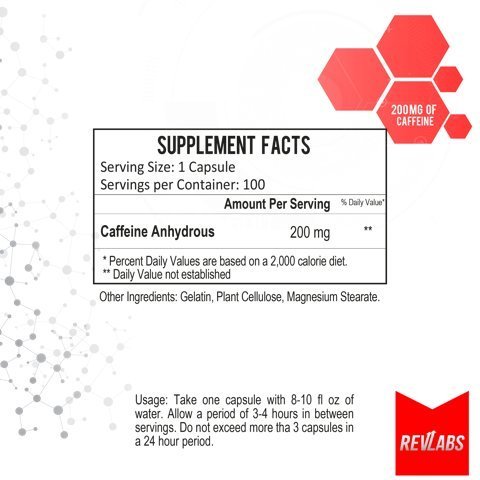 (Rev Labs)/Sports Nutrition/Endurance Energy/DIRECT FROM USA/RevLabs- Caffeine Pills- Maximum Potency- 200mg of Pure, Clean, Energy- 100 capsules